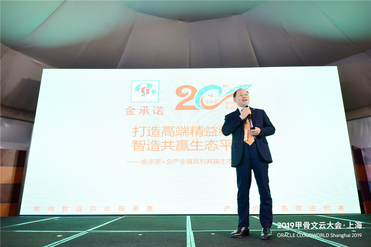 在本次雲大會上(shàng),金(jīn)承諾集團葉明(míng)武董事長(cháng)受邀現場發布《打造高端精益綠(lǜ)色智造共赢生态平台》主題演講,分享攜手甲骨文解決高端制造業客戶數(shù)字化轉型痛點,助推企業高質量發展的成功經驗。