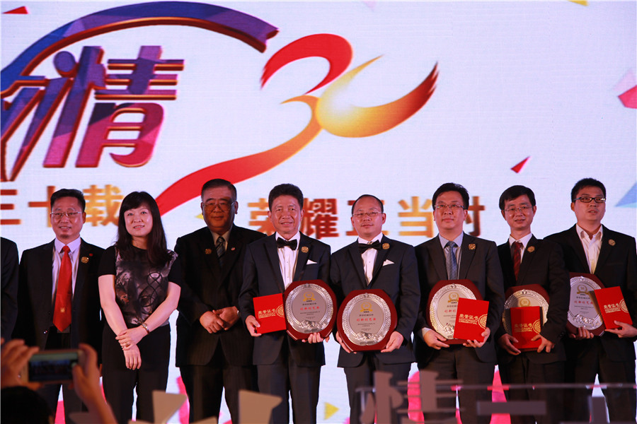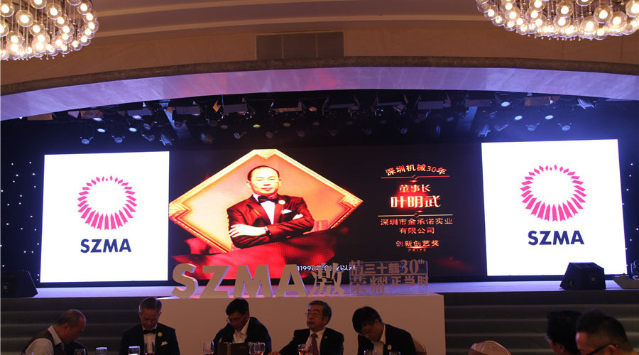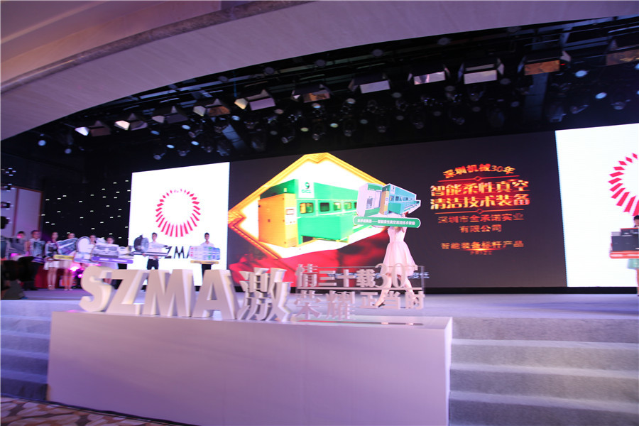 晚會最激動人(rén)心的時(shí)刻,當屬深圳機械30年(nián)卓越貢獻獎、風(fēng)雲人(rén)物(wù)、标杆産品、同舟共濟獎,以及協會30周年(nián)系列活動獎項頒發。金(jīn)承諾集團葉明(míng)武董事長(cháng)榮獲“深圳機械30年(nián)風(fēng)雲人(rén)物(wù)創新創藝獎”,深圳市鑫承諾環保産業股份有限公司研發的智能(néng)柔性真空清潔技術(shù)裝備榮獲“深圳機械30年(nián)智能(néng)裝備标杆産品”。