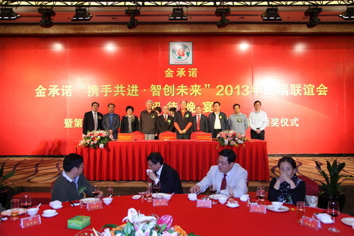 2013年(nián)3月27日晚上(shàng),金(jīn)承諾“攜手共進·智創未來”2013年(nián)高端聯誼會招待晚宴暨第四屆“金(jīn)承諾杯”觀瀾湖高爾夫球邀請(qǐng)賽頒獎儀式于凱賓斯基酒店三樓隆重舉行(xíng)。當晚一(yī)共有300餘人(rén)出席了(le)晚宴。