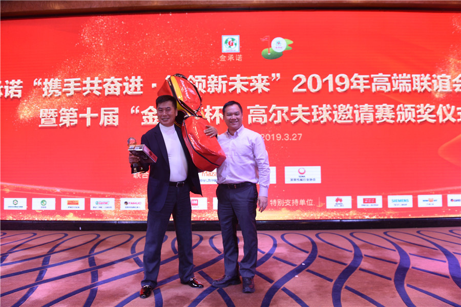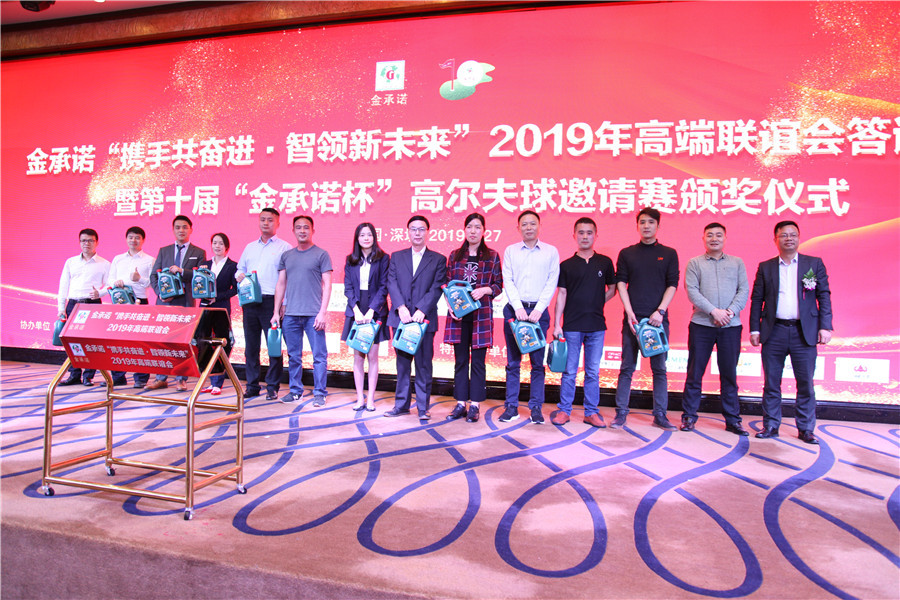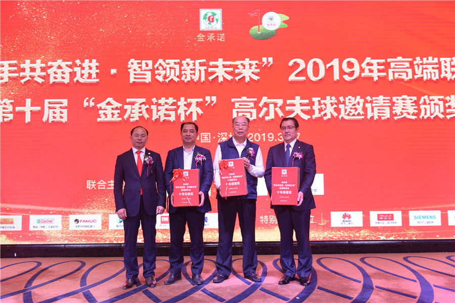 3月27日晚,金(jīn)承諾“攜手共奮進•智領新未來”2019年(nián)高端聯誼會答(dá)謝(xiè)宴會暨第十屆“金(jīn)承諾杯”高爾夫球邀請(qǐng)賽頒獎儀式在深圳凱賓斯基酒店隆重舉行(xíng),金(jīn)承諾集團價值鏈各界朋(péng)友(yǒu)共計400餘名嘉賓群賢畢至,共叙十年(nián)之情,攜手引領智能(néng)制造新時(shí)代。